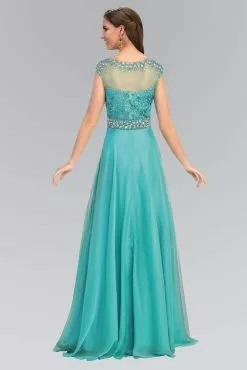 Elizabeth K – GL2002 Illusion Bateau Neckline Chiffon A-line Gown