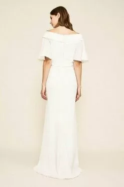 Tadashi Shoji – ALG19141LBR Short Bell Sleeve Off-shoulder Long Gown – 1 Pc Ivory In Size 12 Available