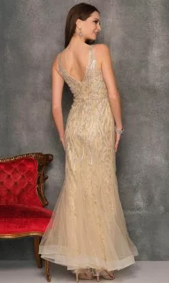 May Queen – Plunging V-Neck Pleated A-Line Dress MQ1635 – 1 Pc Gold In Size 16 Available