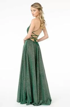 Elizabeth K – Plunging Crisscross Pleated Bodice A-Line Gown GL2609
