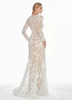 Adrianna Papell Platinum – 40333 Long Sleeve A-Line Embellished Gown