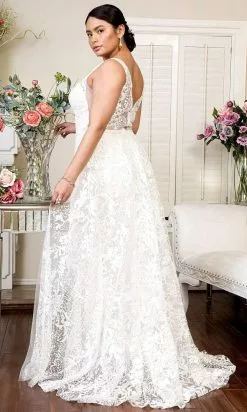 Elizabeth K Bridal Elizabeth K – GL1902 Embellished Plunging V Neck A-line Bridal Gown