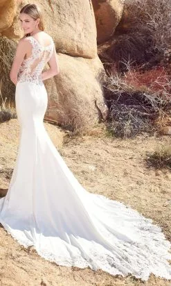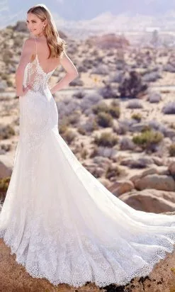 Enchanting By Mon Cheri – 220106 V-Neck Full Lace Sheath Bridal Gown