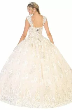 May Queen – MQ1698 Deep V-neck Trumpet Dress With Train