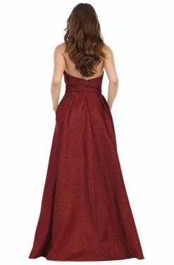 May Queen – MQ1710 Strapless Plunging V-Neck A-Line Dress