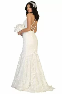 Alexia Designs – Sleeveless V Neck Drape Accent Taffeta Gown IB03 – 1 Pc Ivory In Size 6 Available