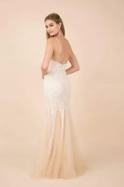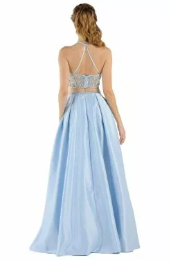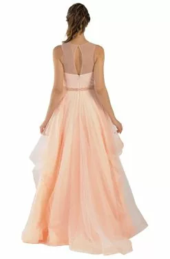 Poly USA – 8134 Illusion Embellished Waist Layered Long Dress