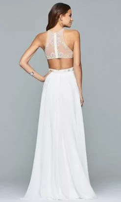 Elizabeth K – GL2002 Illusion Bateau Neckline Chiffon A-line Gown