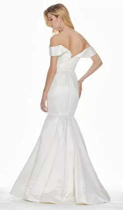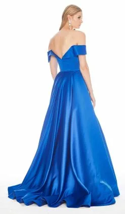 Ashley Lauren – 1399 Illusion Plunging Satin Off Shoulder Gown