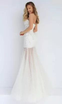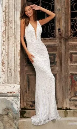 Tarik Ediz – 50896 Straight-Across Bejeweled Illusion Bridal Gown