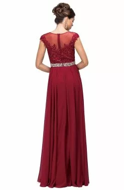 Cinderella Divine – Appliqued Illusion Bateau Chiffon Evening Gown