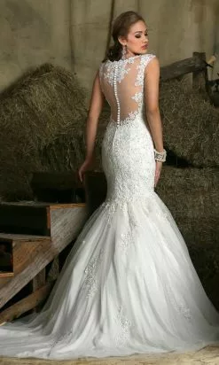 Da Vinci Bridal – 50293 Jewel Lacey Keyhole Back Sheath Gown
