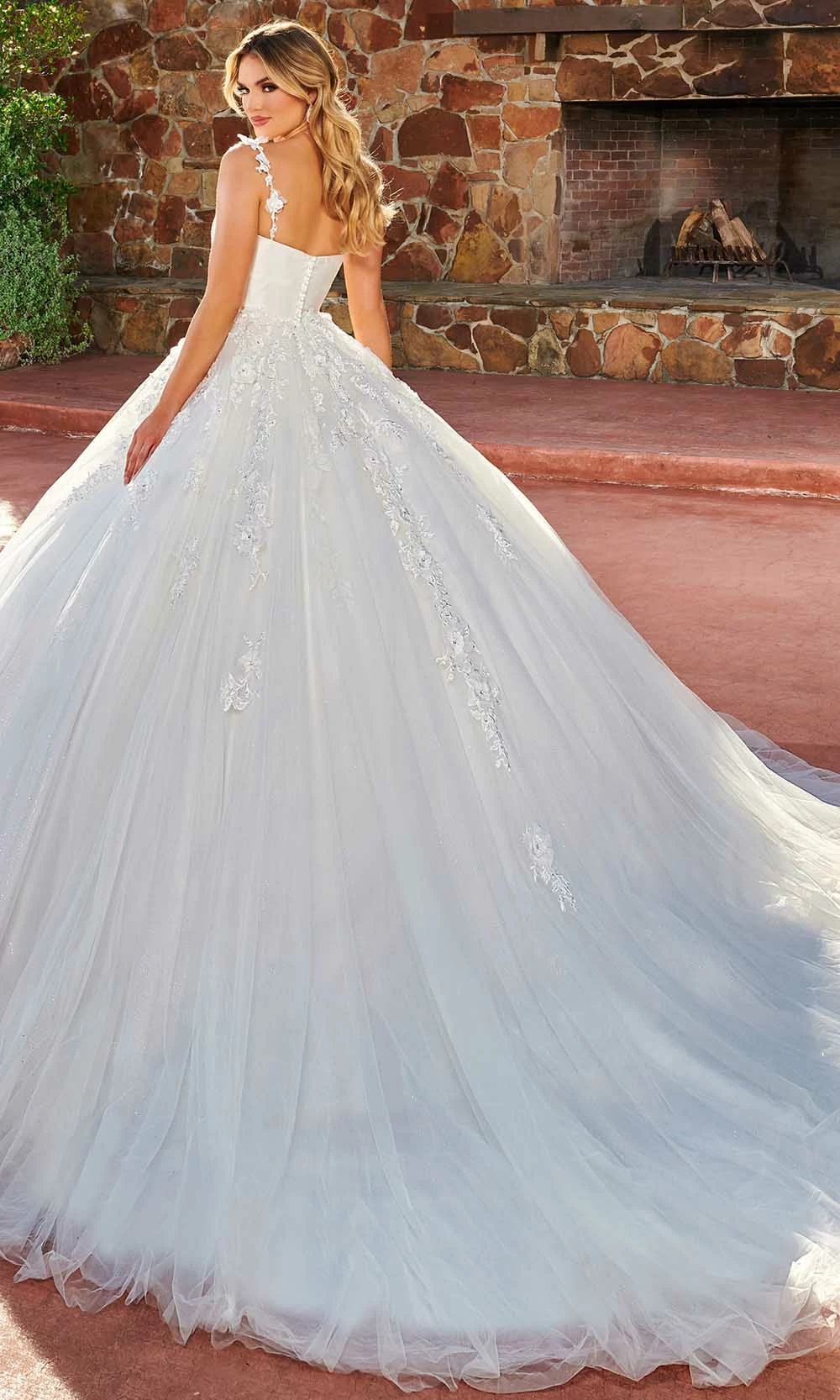 | Details: | Ornate Straps, Pleat-Details, Lace Appliques, 3D Flowers, Semi-cathedral Train, Bolero |