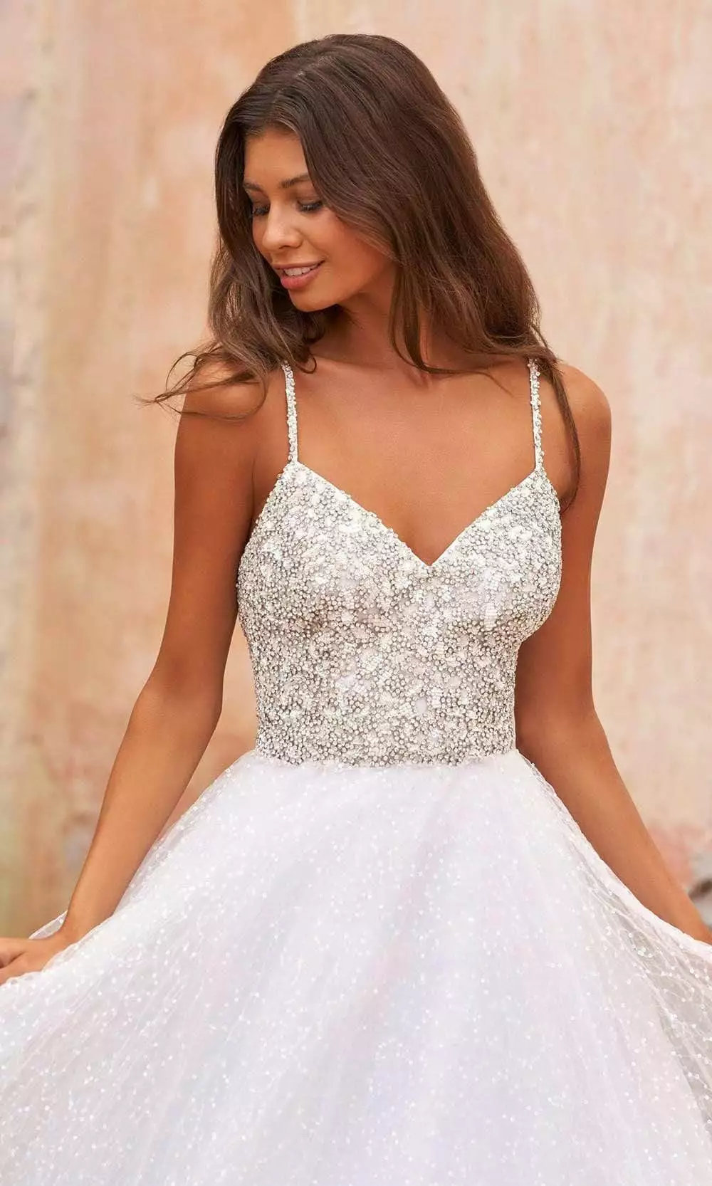 | Details: | Sleeveless, V-Neck, Spaghetti Straps, Beaded, Tulle Skirt, Sweep Train |