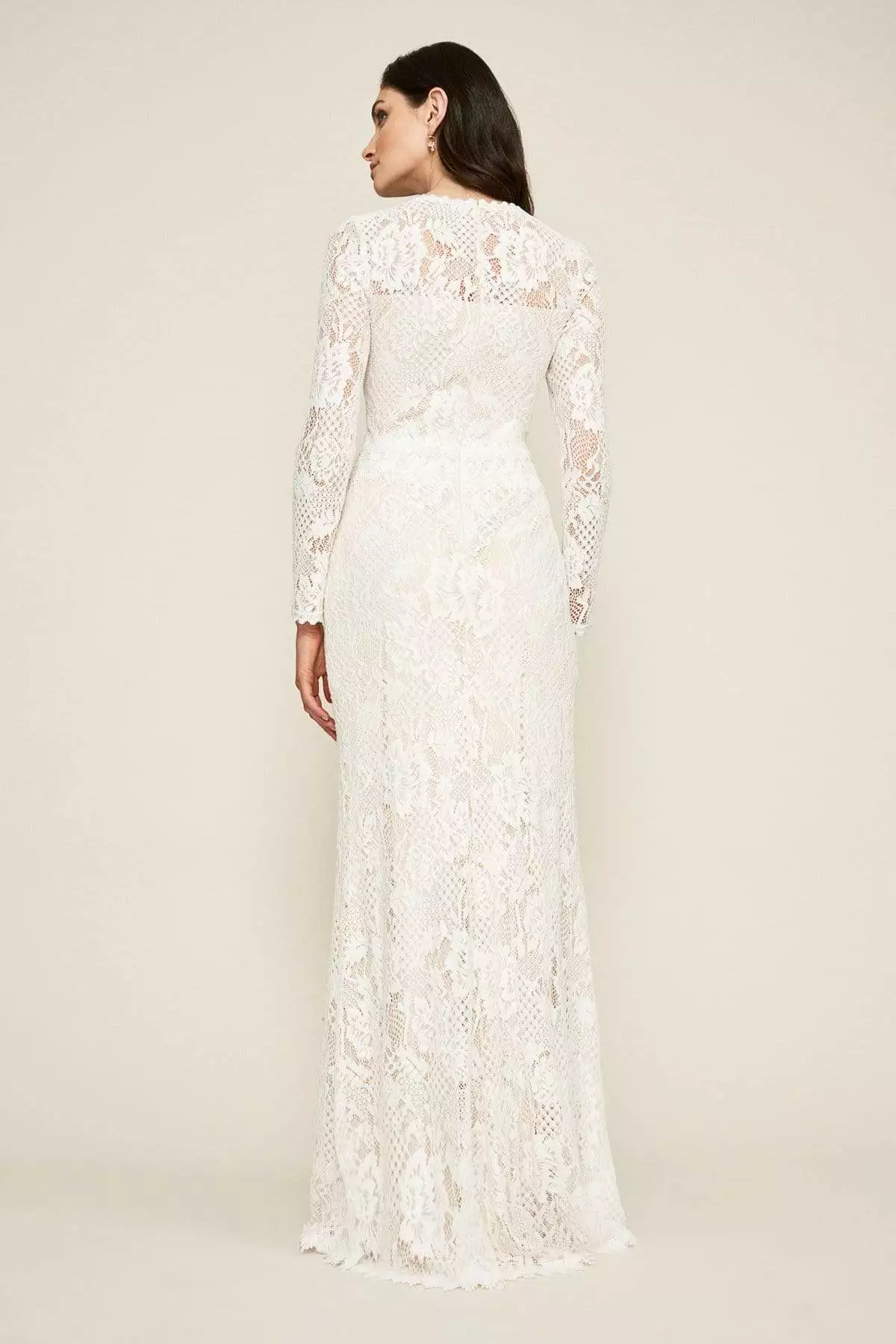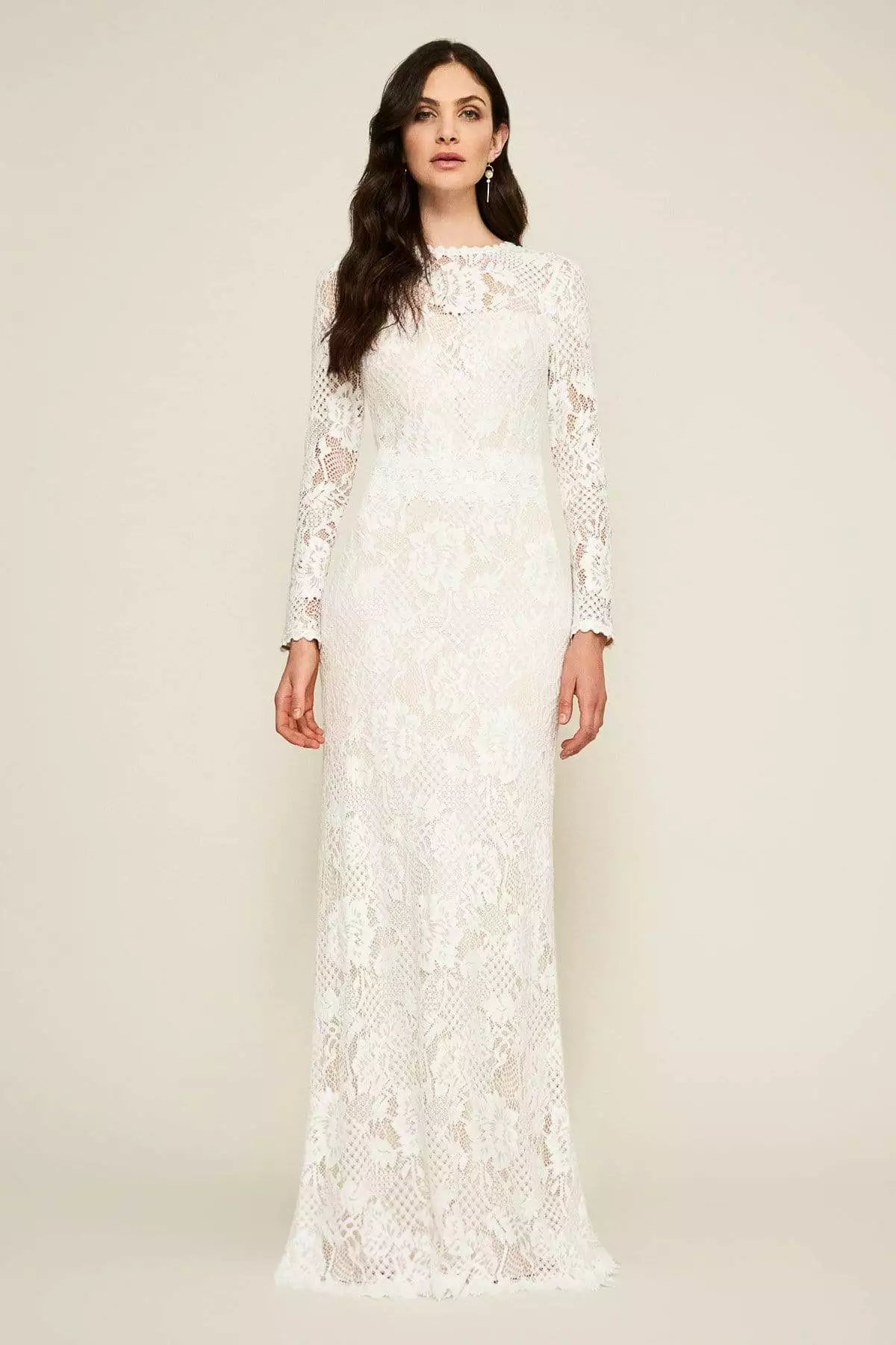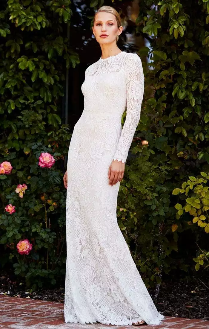 | Details: | Long sleeves, Lace, Fitted bodice, Sheath skirt, Back zipper, Zigzag hemline |