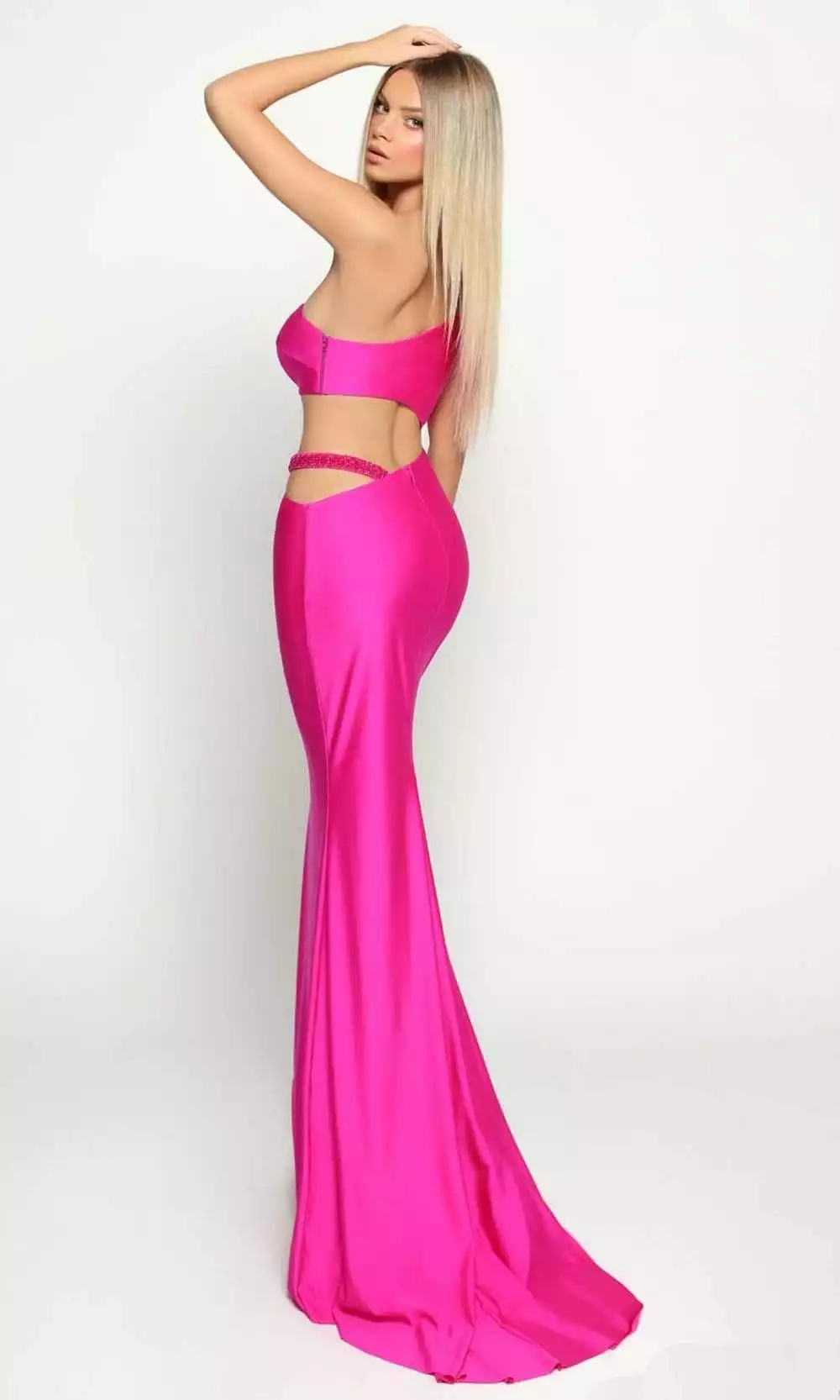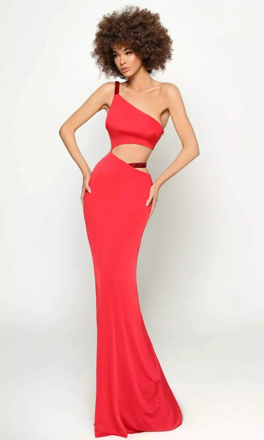 Channel red carpet glamour wearing this simple yet alluring Tarik Ediz 51004 evening dress. Having a fitted bodice, this also displays an asymmetrical neckline supported by a one-shoulder thick strap complemented by a fascinating side cutout. With a trumpet silhouette finishing down to its full length, this also fashions a mid-open back with back zipper. Capture the glamour as you walk on this stunning gorgeous Tarik Ediz design.