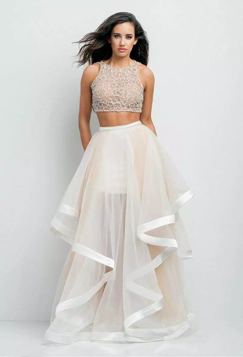 | Details: | 100% Polyester, Two piece, Sleeveless, Nude lining, Embellished top, Back keyhole, A-line skirt, Back zipper |
