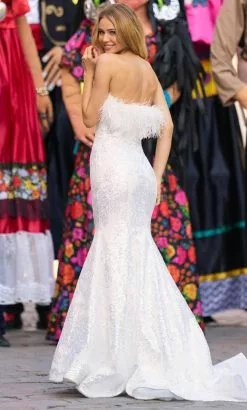 Sherri Hill 55327 – Strapless Feathered Detail Wedding Dress